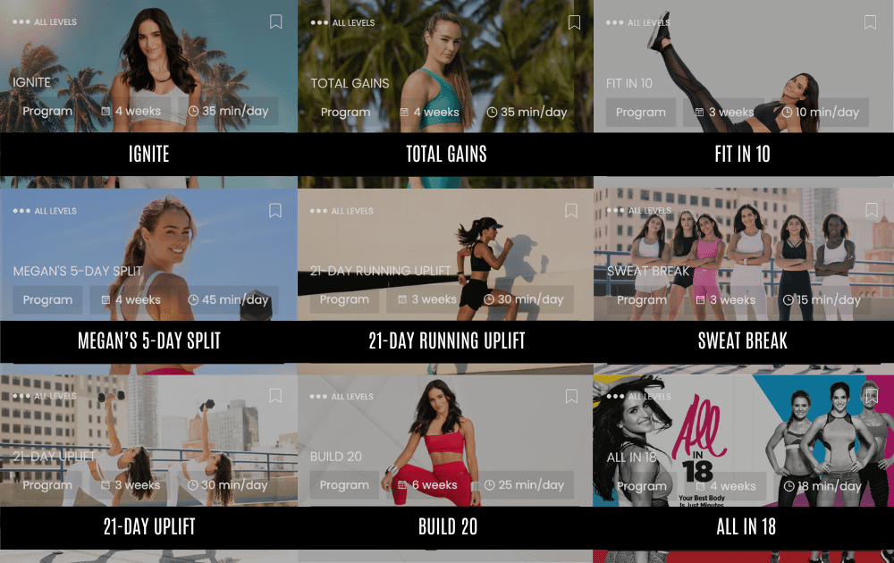 - ACCÈS ILLIMITÉ à plus de 20 programmes complets, 200 séances d’entrainement de différentes durées