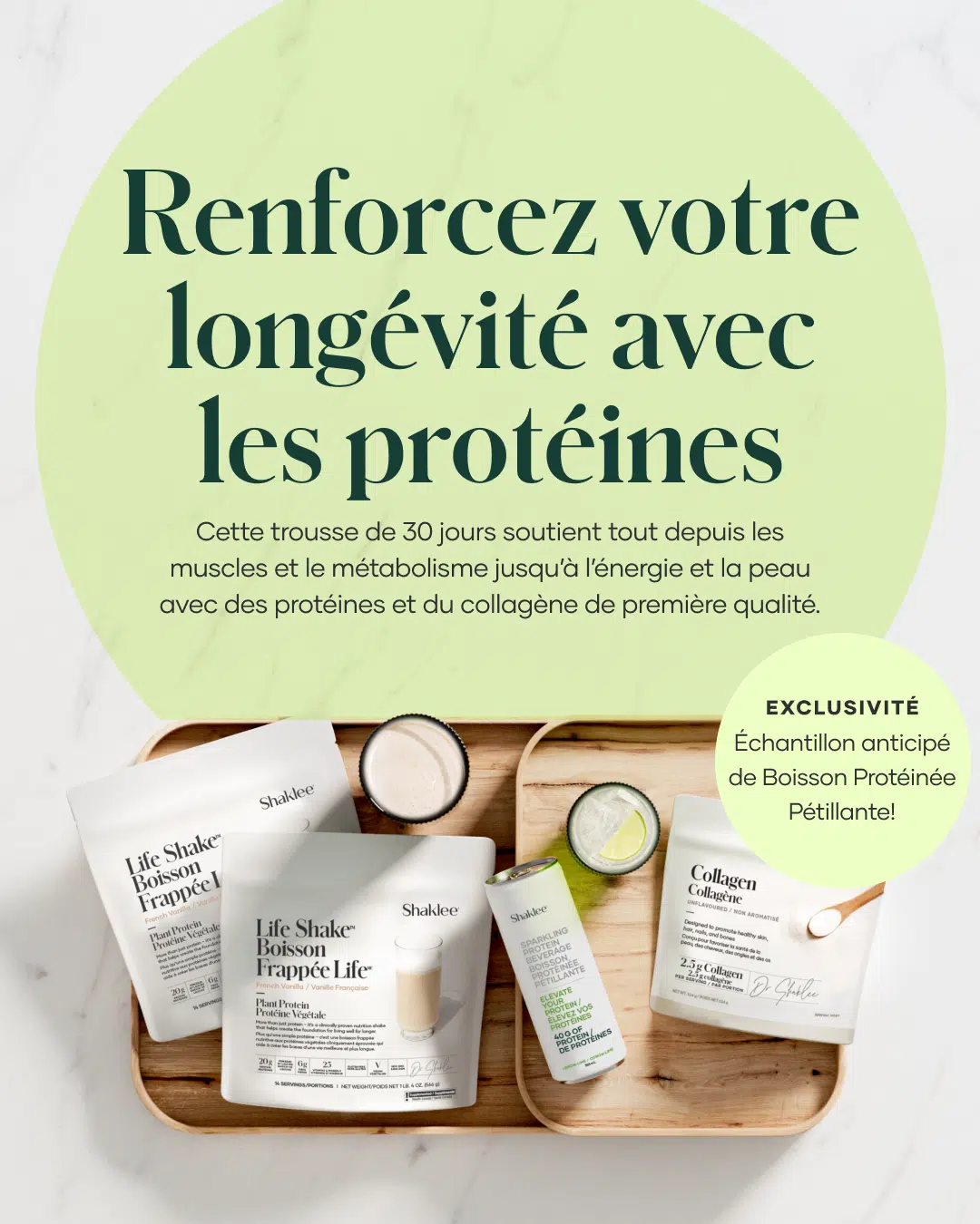 Le seul collagène sur le marché qui inclut les 9 acides aminés essentiels! Le collagène Shaklee, combiné aux bienfaits de la biotine et de la vitamine C, favorise la santé de la peau, des cheveux et des ongles.